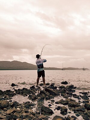 A couple of hundred meters away down at "the Point", and along the shoreline to the east of "the Point" wear your reef walkers to experience a different world of shore-based fishing in shallow waters just offshore; add Coral Trout to your catch list.